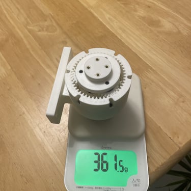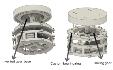 Consists of a driving gear that interacts with an inverted gear built into the base. A custom designed ball bearing ring acts to reduce friction between plastic components, increasing efficiency and precision.
