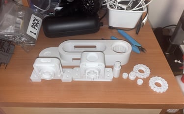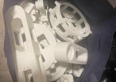 3D printed several of the key subsytems, optimizing print profiles for rigidity and weight minimization